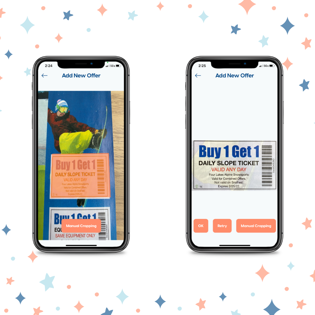 When uploading an offer, you now are able to hold the camera to easily scan. Our technology will automatically crop and resize your image for you so you don’t have to! Simply hold the camera steady and we will handle the rest. Don’t worry, you can still choose to manually crop your uploads as well.